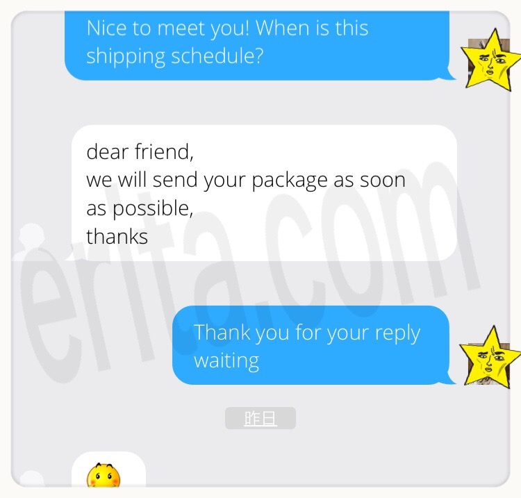いつ発送される?とメッセージを送った所